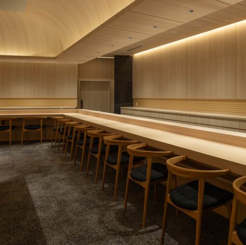 落ち着いた和の趣がありながらも、ライブキッチンがもたらす程よい緊張感と華やかさが同居しています。 カウンター席は大切な方との記念日や、ゆっくりと自分へのご褒美を味わいたい夜に最適。 都会の喧騒を忘れ、五感を研ぎ澄ませて食と向き合う、優雅なひとときをお楽しみください。